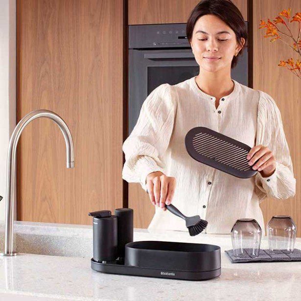 סט SinkStyle ברבנטיה, אפור כהה מינרלי כולל 3 חלקים:אורגנייזר פלסטיק אפור כהה מינרלי – קופסה מאווררת לאחסון הספוגים ומברשת הכלים, מוט תליה ממתכת למגבת הכלים הרטובה ומגש קומפקטי רב שימושי, לשני הדיספנסרים ו/או לשמירת התכשיטים כששוטפים כלים.בסיס יציב ומונע החלקה וסריטותמידות: רוחב 35 ס״מ | גובה 16 ס״מ | עומק 13 ס״מדיספנסר לסבון אפור כהה מינרלי – עיצוב יפיפה המשלב מתכת ומיכל זכוכיתמעוצב, איכותי ולא מחלידפתח גדול למילוי קל ונוחמידות: קיבולת 200 מ״ל | רוחב 6.5 ס״מ | גובה 15 ס״מ | עומק 8.5 ס״מסקוויזר לסבון כלים אפור כהה – סיליקון גמיש בטקסטורה מונעת החלקה, גם כשרטובחלון שקוף – תמיד יודעים מתי למלא פתח גדול למילוי קל ונוח מידות: קיבולת 200 מ״ל | רוחב 5 ס״מ | גובה 15 ס״מ | עומק 5 ס״מחלק מקולקציית אביזרים לכיור המטבח SinkStyle ברבנטיה 5 שנות אחריות ברבנטיה+ ישירות מהיבואן+ התאמת מחיר נמוך + 5% הנחת BRASS Price Match – לפרטים נוספים+ עד 6 תשלומים בלי ריבית (בקנייה באשראי מעל 600 ש״ח)