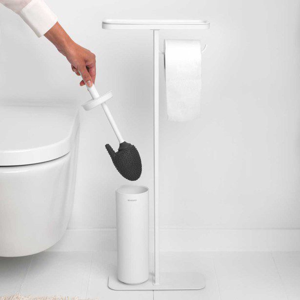 כולל מתקן נייר טואלט, מברשת אסלה סיליקון דיסקרטית, קבועה לבסיס וגם מדף לנייד