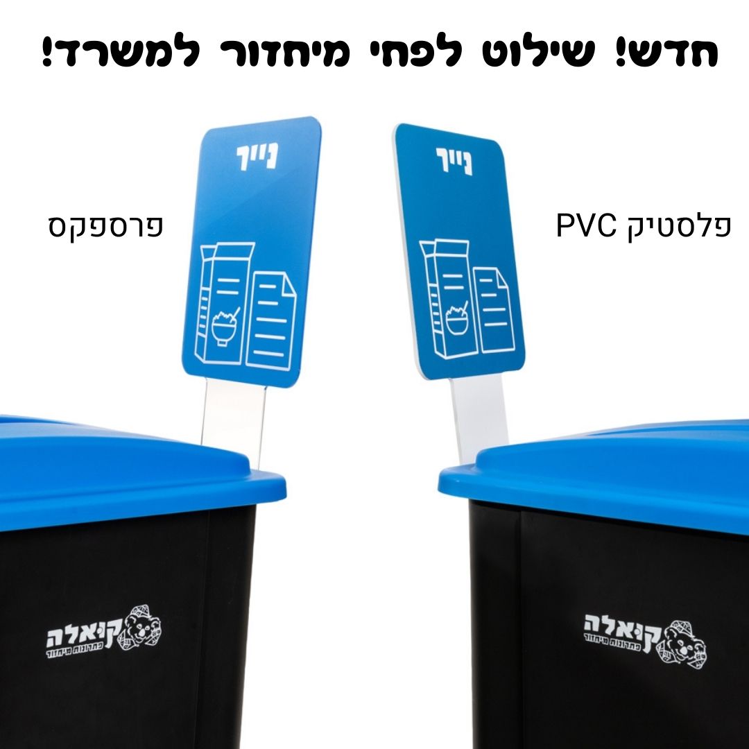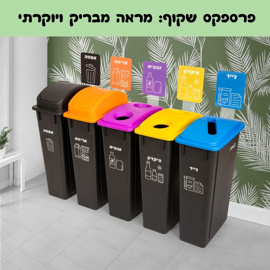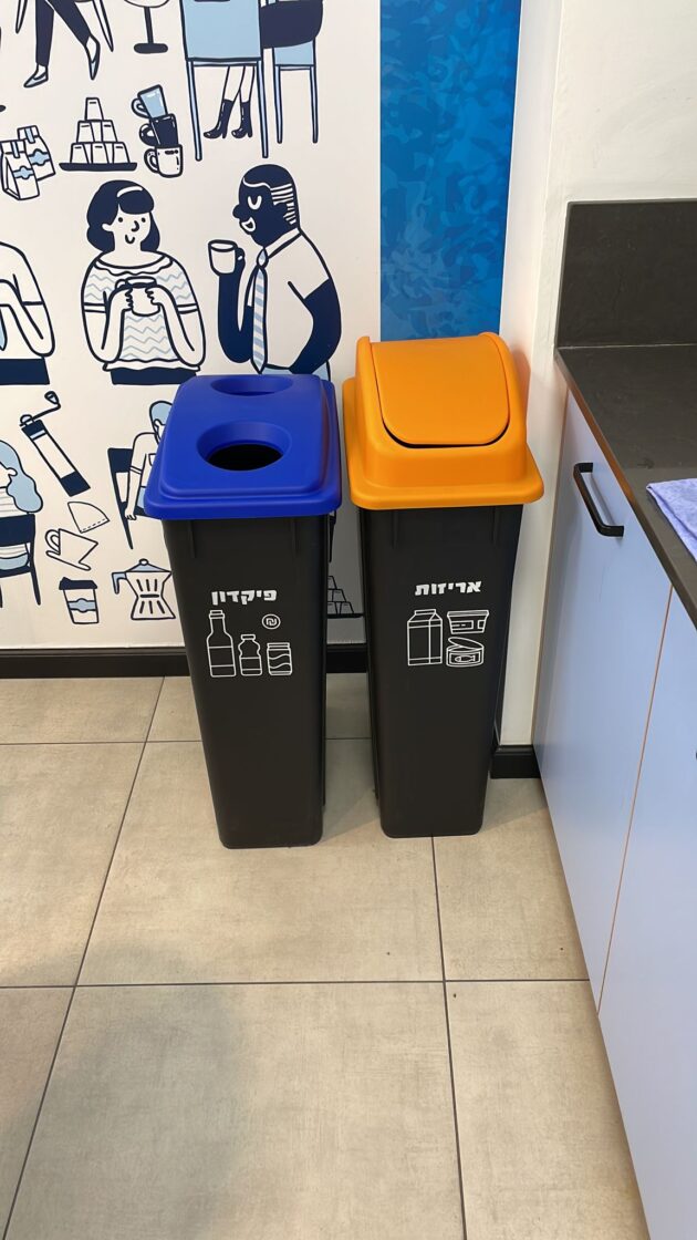 על כל פח אייקון המסמן את זרם הפסולת וכיתוב